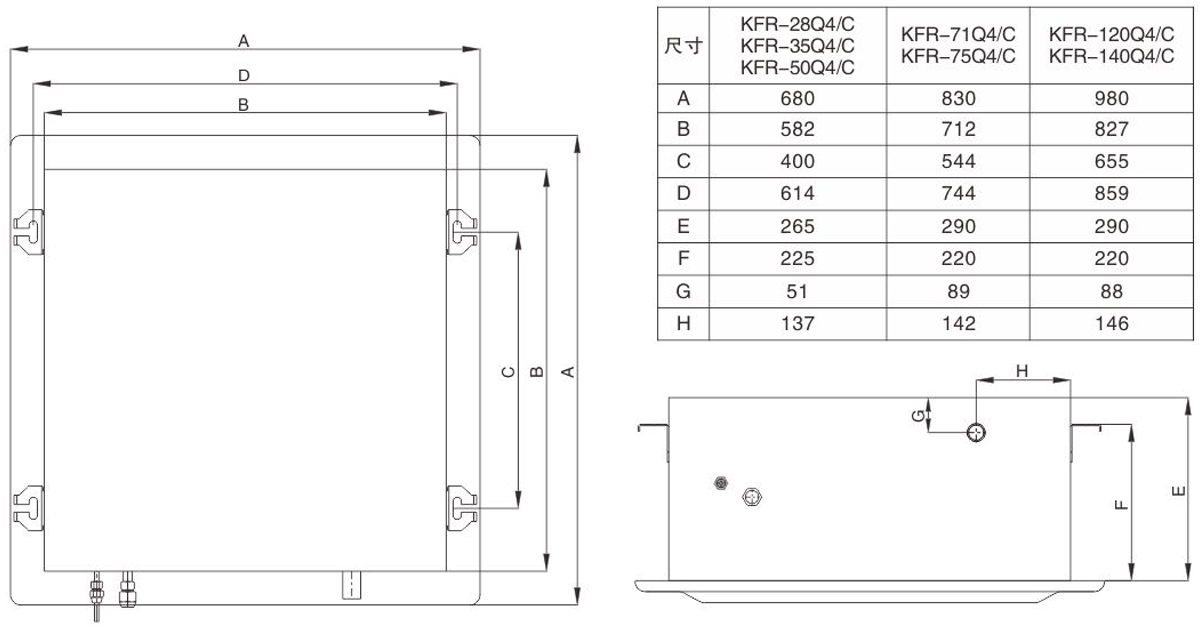 四出風嵌入式空調室內機